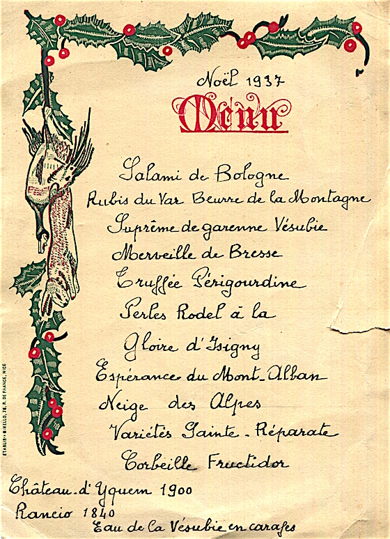 France Nice Special Occassion Menu Christmas 1937
