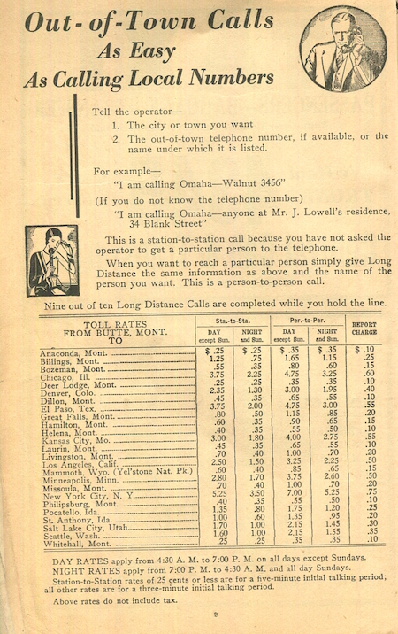 USA Montana Butte Telephone Directory 1937 Inside 2