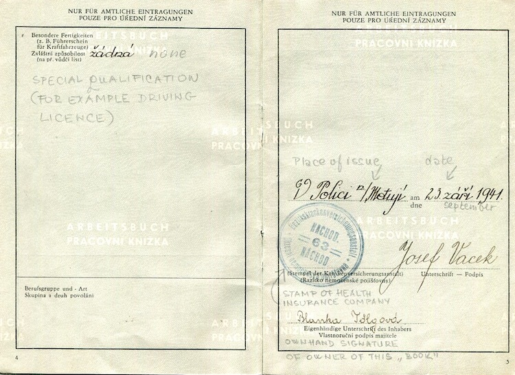 Czechoslovakia Work Book Protectorate Bohemia And Moravia 1941 Inside 4