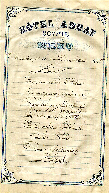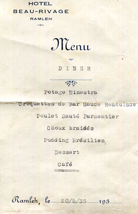 Egypt Alexandria Hotel Beau-Rivage Menu 1935