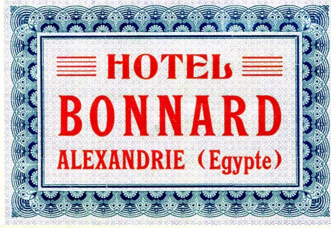 Egypt Alexandria Hotel Bonnard Luggage Label 1924