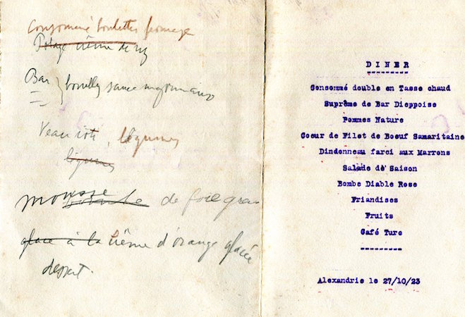Egypt Alexandria Hotel Claridges Menu 1923 Inside