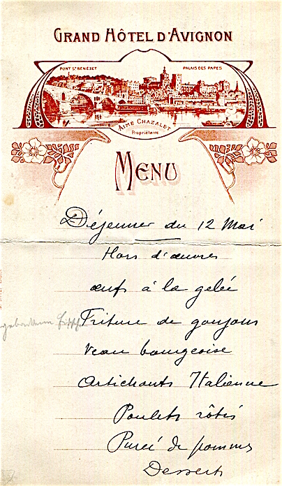 France Avignon Hotel Grand Hotel D Avingnon Menu 1932