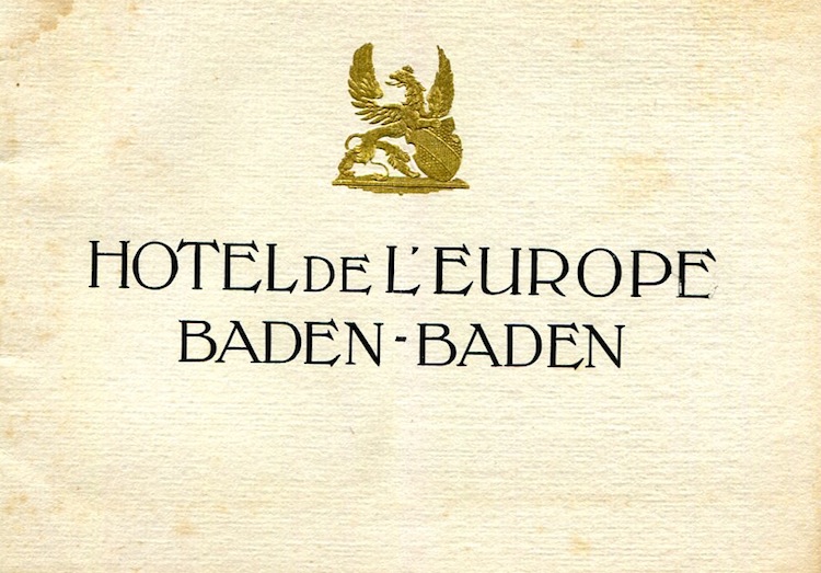 Germany Baden-Baden Brochure Hotel De L Europe 1920 Front