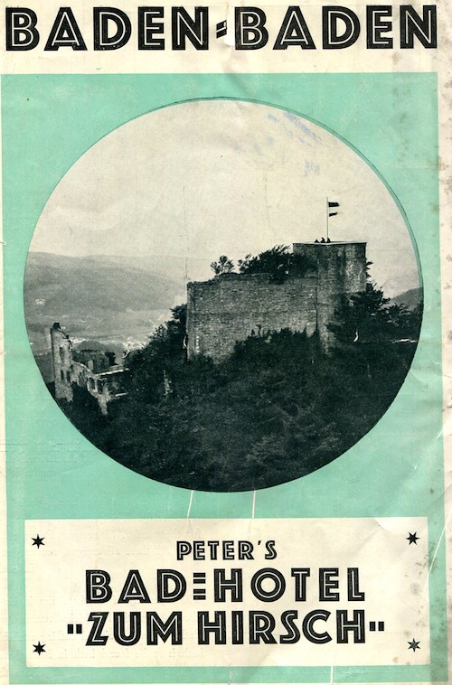 Germany Baden-Baden Brochure Peters Bad Hotel 1938 Front