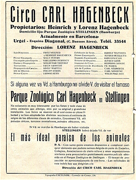 Spain Barcelona Entertainment Circus Hagenbeck Program 1934 Back