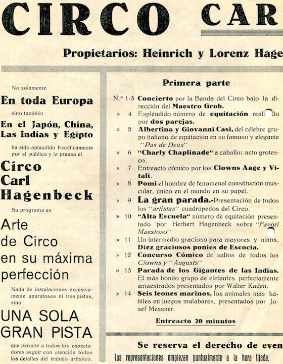 Spain Barcelona Entertainment Circus Hagenbeck Program 1934 Front