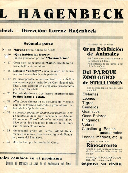 Spain Barcelona Entertainment Circus Hagenbeck Program 1934 Inside 2