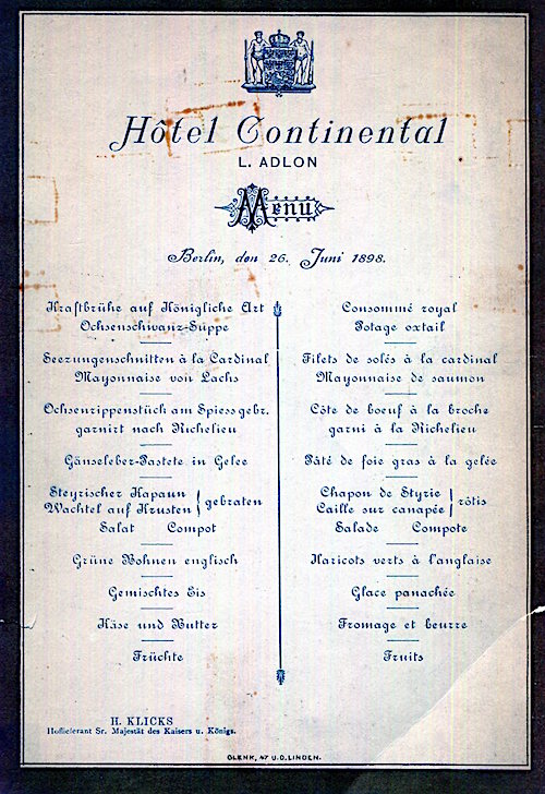 Germany Berlin Continental Hotel Postcard Dining Room 1913
