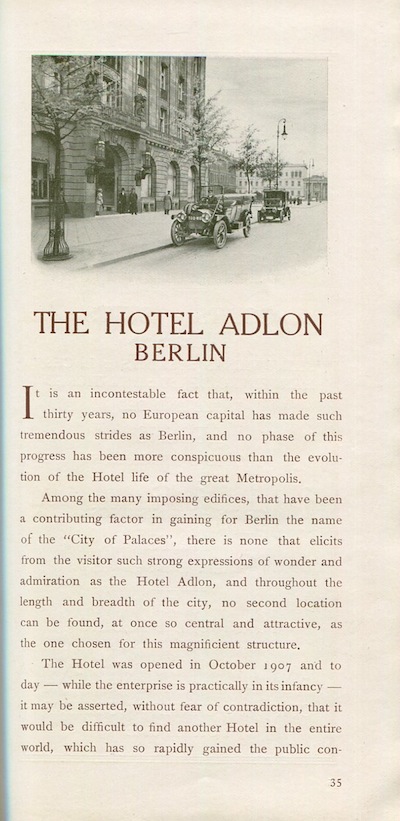 Germany Berlin Hotel Adlon Brochure 1912 Inside 2