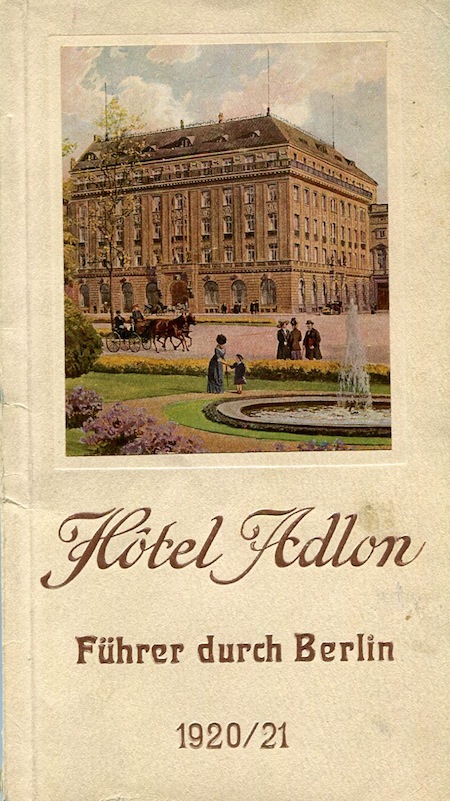 Germany Berlin Hotel Adlon Brochure 1920-1921 Front
