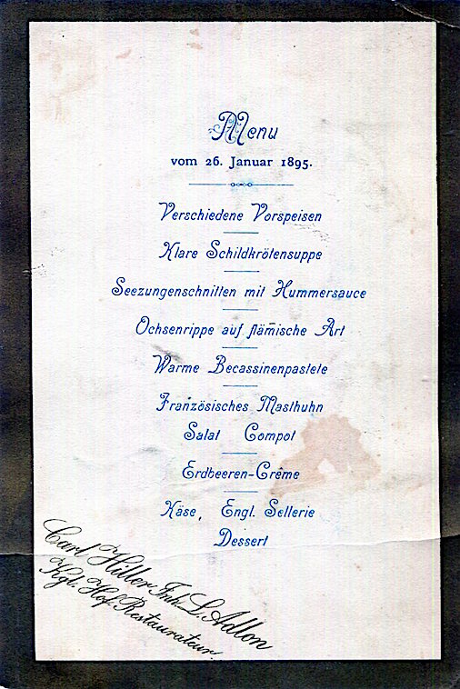 Germany Berlin Hotel Adlon Carl Hiller Restaurant Menu 1895