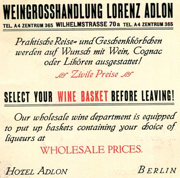 Germany Berlin Hotel Adlon Brochure 1920-1921 Back