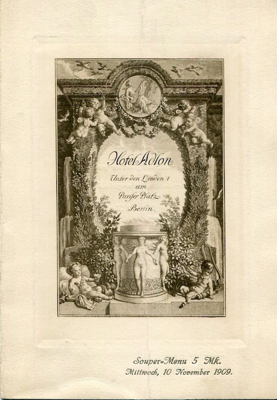Germany Berlin Hotel Adlon Menu 1909 Front