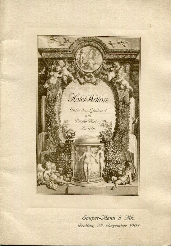 Germany Berlin Hotel Adlon Menu Christmas 1908 Front