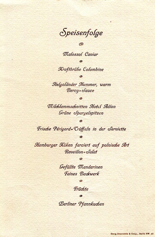 Germany Berlin Hotel Adlon Menu New Years Eve 1910 Inside