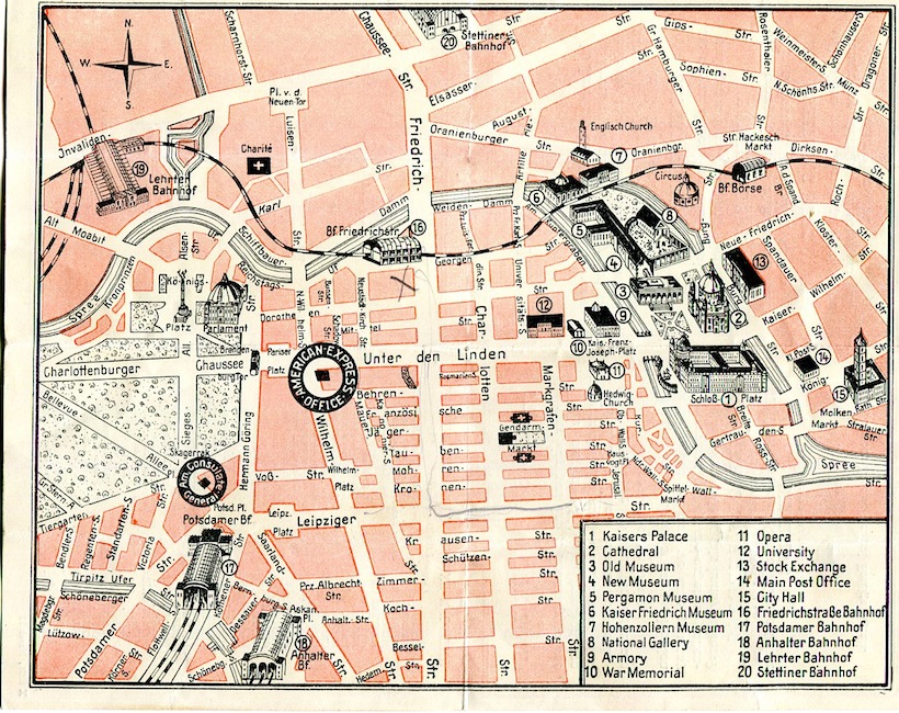 Germany Berlin Map American Express 1937 Back