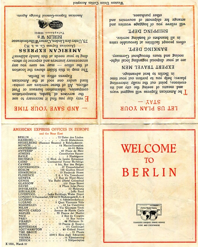 Germany Berlin Map American Express 1937 Front