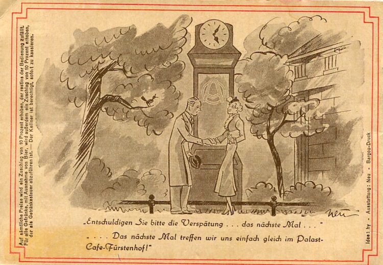 Germany Berlin Palast Cafe Hotel Fürstenhof Brochure 1930 Back