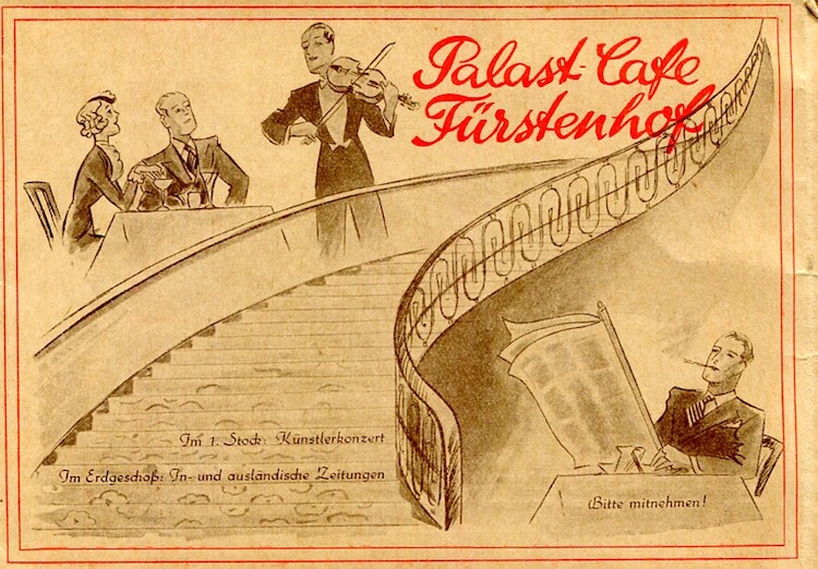 Germany Berlin Palast Cafe Hotel Fürstenhof Brochure 1930 Front