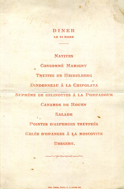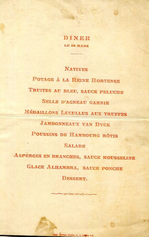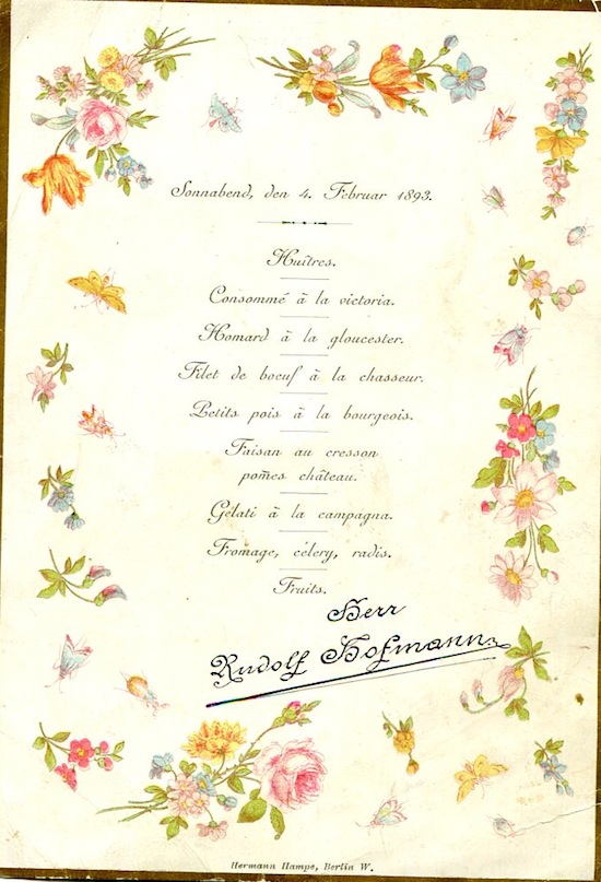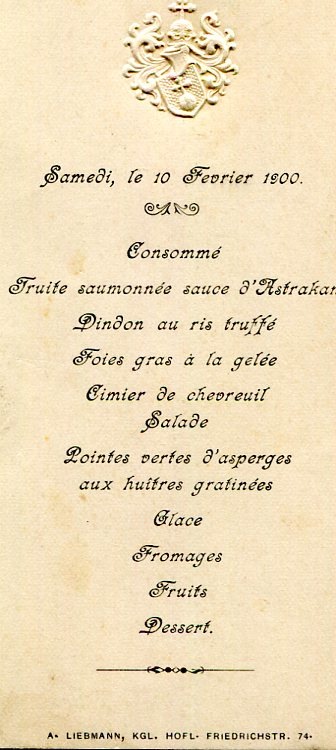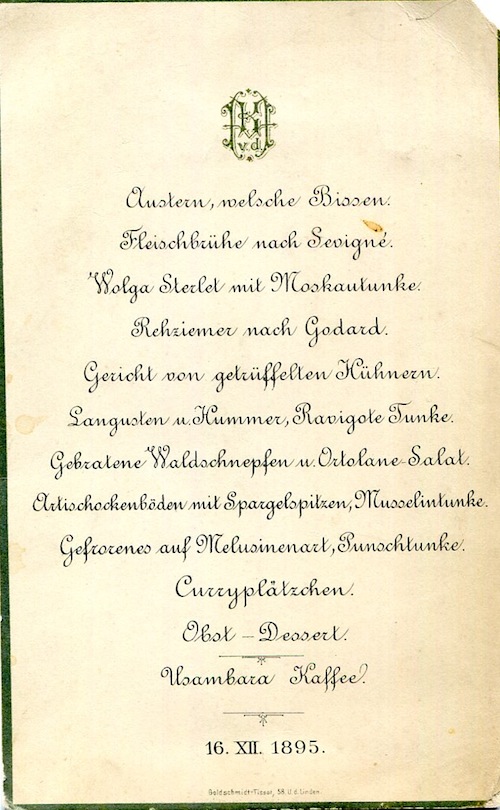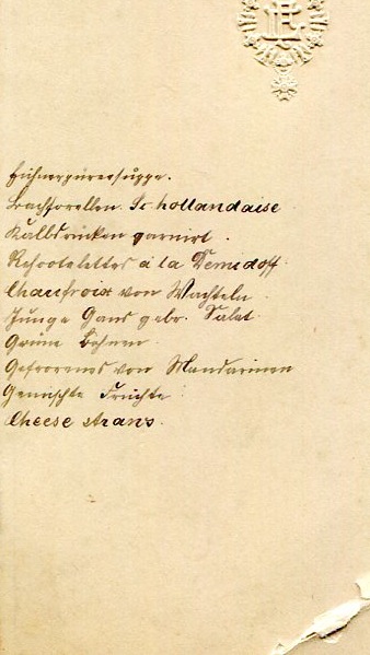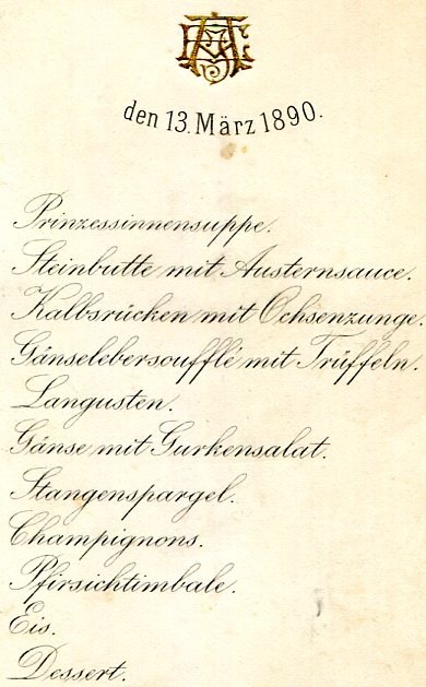 Germany Berlin Special Occasion Menu Count Of Bohemia 1890 Front