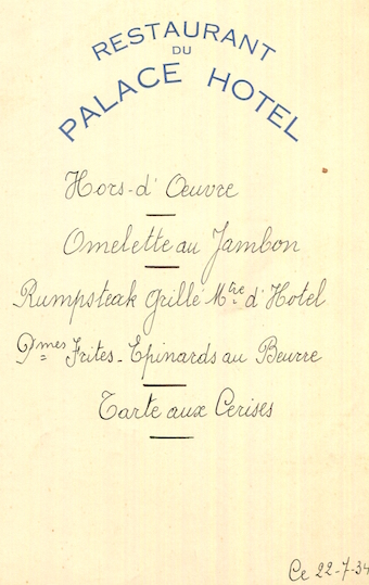 France Biarritz Hotel Palace Menu 1934