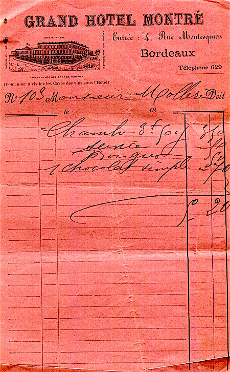 France Bordeaux Hotel Grand Hotel Francais Receipt 1901