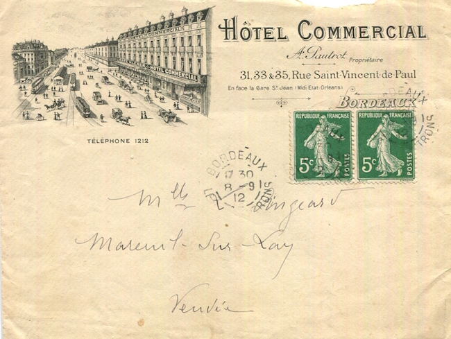 France Bordeaux Hotel Hotel Commecial Envelope 1912