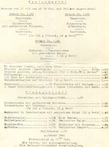 Germany Bremen Hotel Columbus Menu 1941 Back