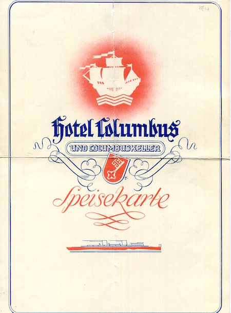 Germany Bremen Hotel Columbus Menu 1941 Front
