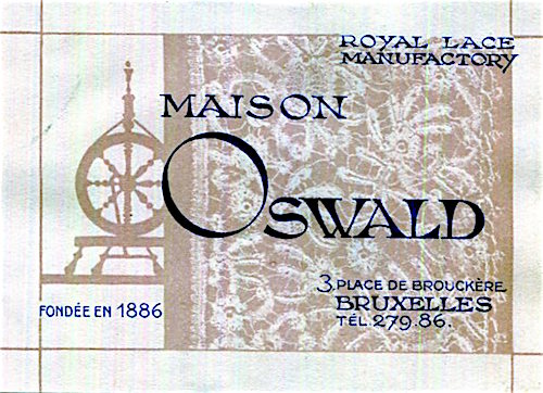 Belgium Brussels Commerce Maison Oswald Lace Business Card 1931
