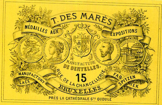 Belgium Brussels Commerce T Des Mares Business Card Lace Manifacture 1896