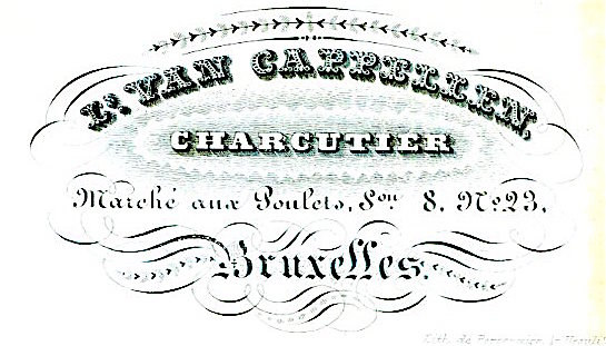 Belgium Brussels Commerce Z Van Caprellen Charcutier Business Card 1833