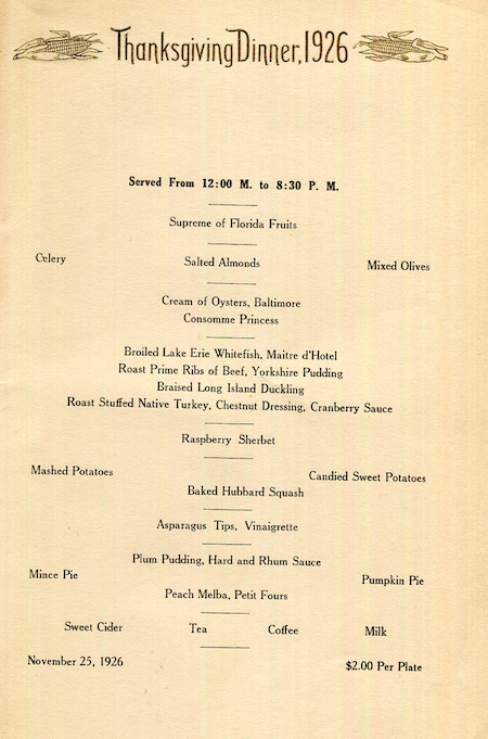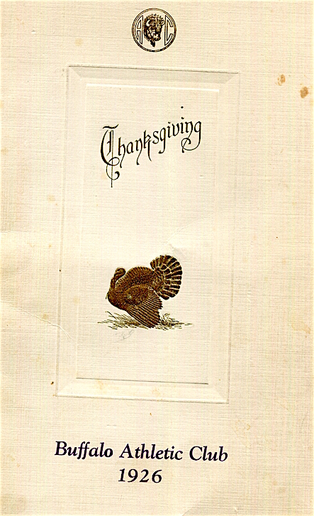 USA New York Buffalo Menu Athletic Club Thnksgiving 1926 Front