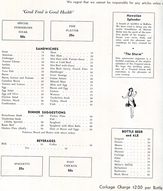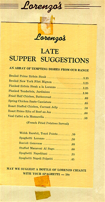 USA New York Buffalo Menu Restaurant Lorenzos 1940 Inside 1