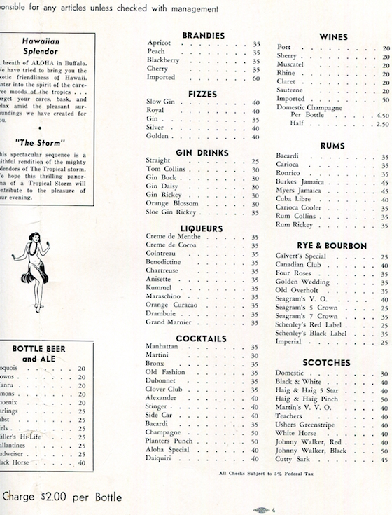 USA New York Buffalo Menu Cafe Aloha 1943 Inside 2