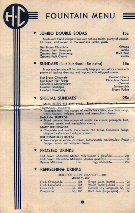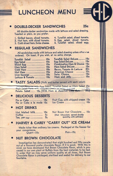 USA New York Buffalo Menu Harvey Carey Soda Fountain 1939 Inside 2