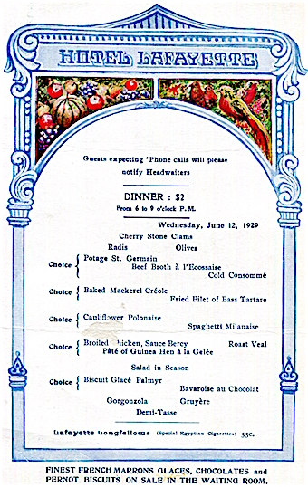 USA New York Buffalo Menu Hotel Lafayette 1928