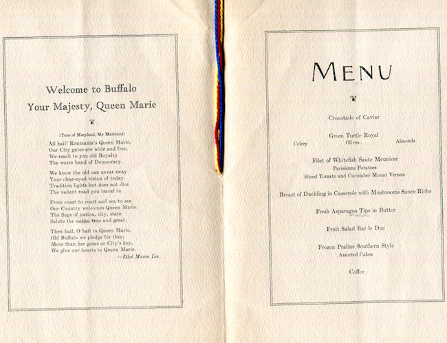 USA New York Buffalo Menu Hotel Statler Queen Marie 1926 Front