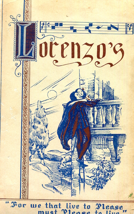 USA New York Buffalo Menu Restaurant Lorenzos 1940 Front