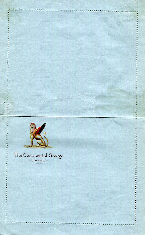 Egypt Cairo Continental Savoy Hotel Stationery 1928-2
