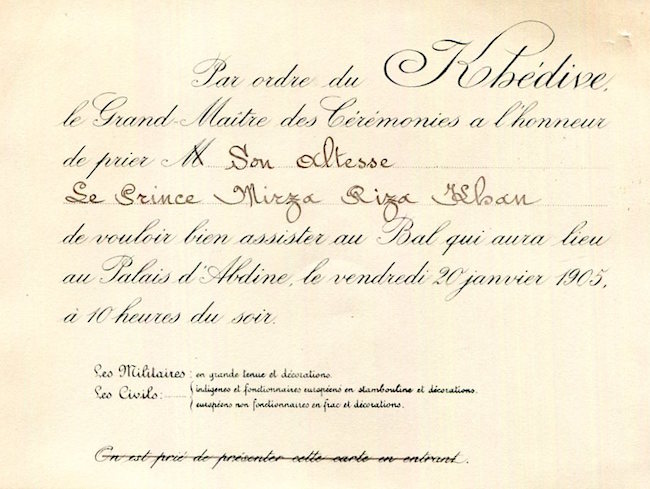 Egypt Cairo Palace D Abdine Invitation Ball Prince Riza Khan 1905