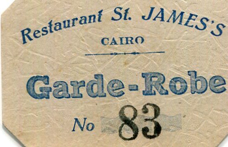 Egypt Cairo Restaurant St James Coat Check Ticket 1934