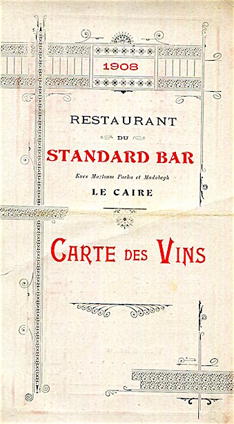 Egypt Cairo Restaurant And Bar Standard Bar Wine Menu 1909 Front