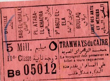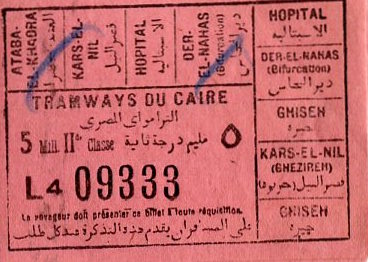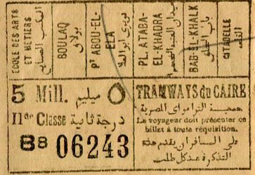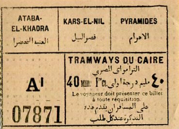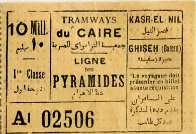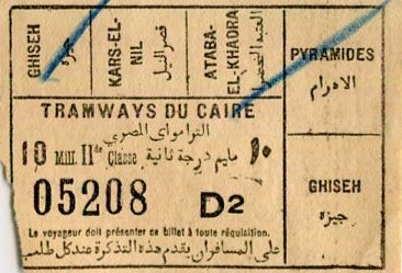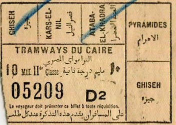 Egypt Cairo Tram Ticket 1937-2