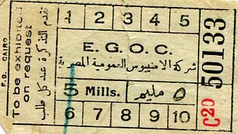 Egypt Cairo Tram Ticket 1937-8