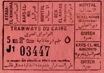 Egypt Cairo Tram Ticket 1937-9