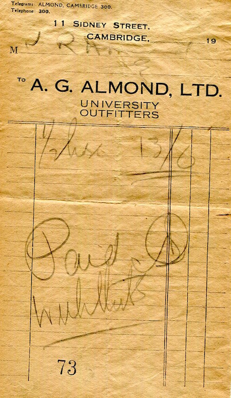 England Cambridge Commerce A. G. Almond Receipt 1925
