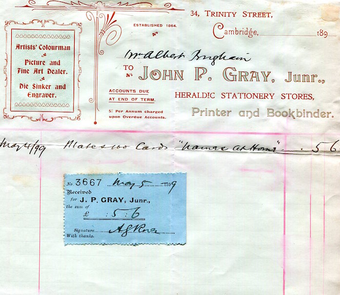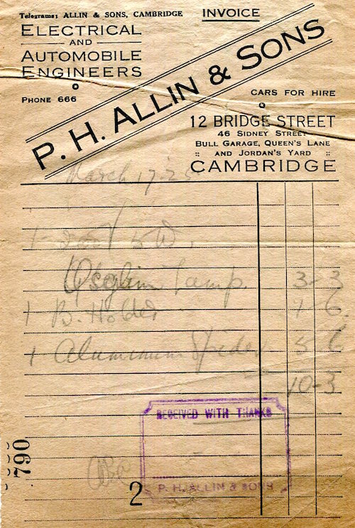 England Cambridge Commerce P. H. Allin & Sons Receipt 1925