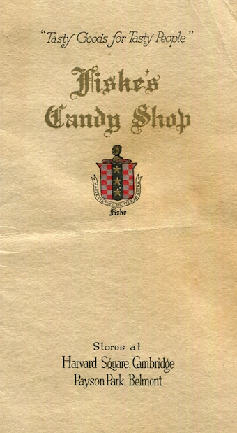 USA Massachusetts Cambridge Menu Candy Shop Fiskes 1920 Front